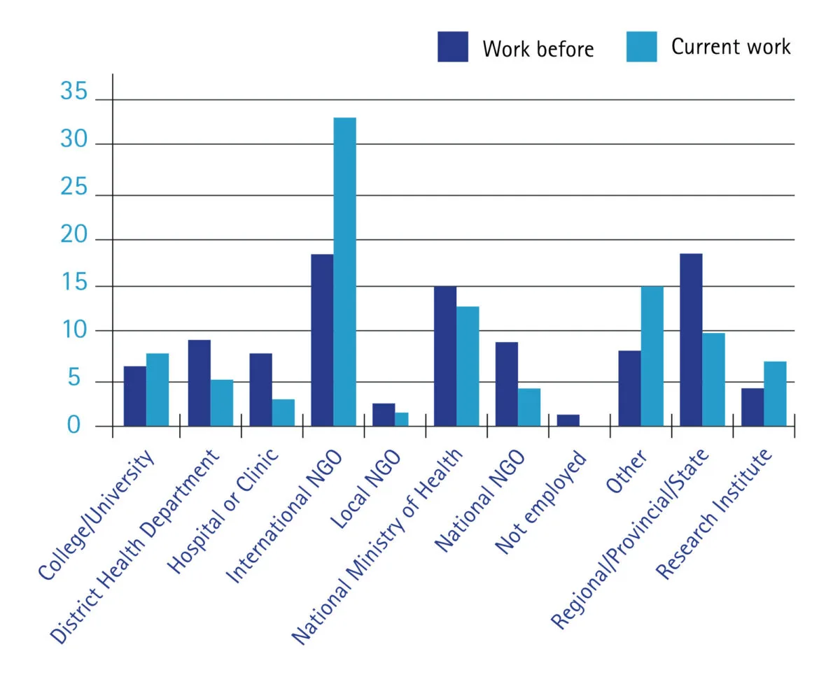 Quantitative and qualitative studies have shown that alumni make a difference at their workplace and in the health systems where they work. The graduates themselves, their peers, and their supervisors reported positive changes at the workplace level, especially in terms of management, leadership, innovation, teaching and training, advocacy, community engagement and research involvement. Effects mentioned outside of their immediate workplace included an inter-sectoral approach, a national footprint via policy advisory roles for Ministries of Health, policy development, and capacity building [2, 5].