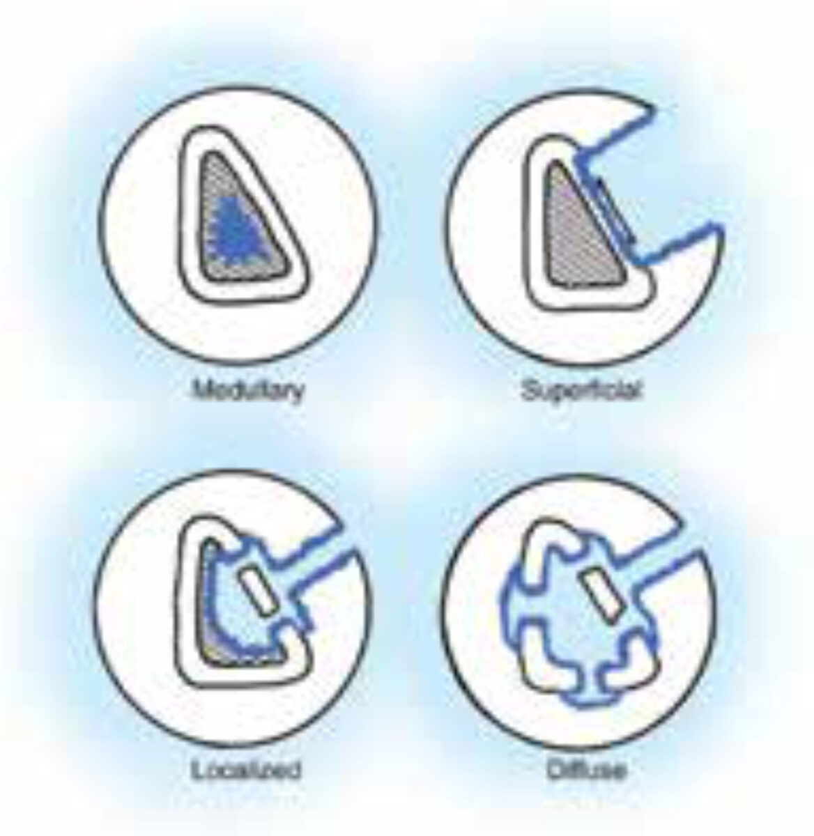 - Type I: medullary osteomyelitis.