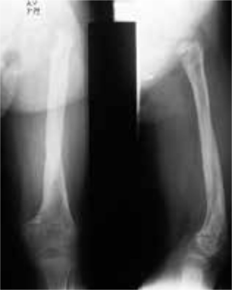 Acute osteomyelitis is characterized by pain, lethargy, fever (often deemed as caused by malaria), and local inflamma-tory signs. In Africa mainly the infants are exposed (poorly groomed umbilical cord; drips for several weeks). Staphy-lococcus aureus is responsible in the majority of cases, but its preponderance is declining, in favour of Gram nega-tives. The proximal metaphyses of the femur and tibia are the areas of choice, but the infection can extend towards the diaphysis. In infants up to the age of 12 months, capillaries cross the growth plate and can therefore cause septic ar-thritis. In the older child these capillar-ies no longer exist, but an intracapsular metaphysis can also allow the infection to spread to the joint. This is the case for the proximal humerus, the proximal radius and the proximal femur.