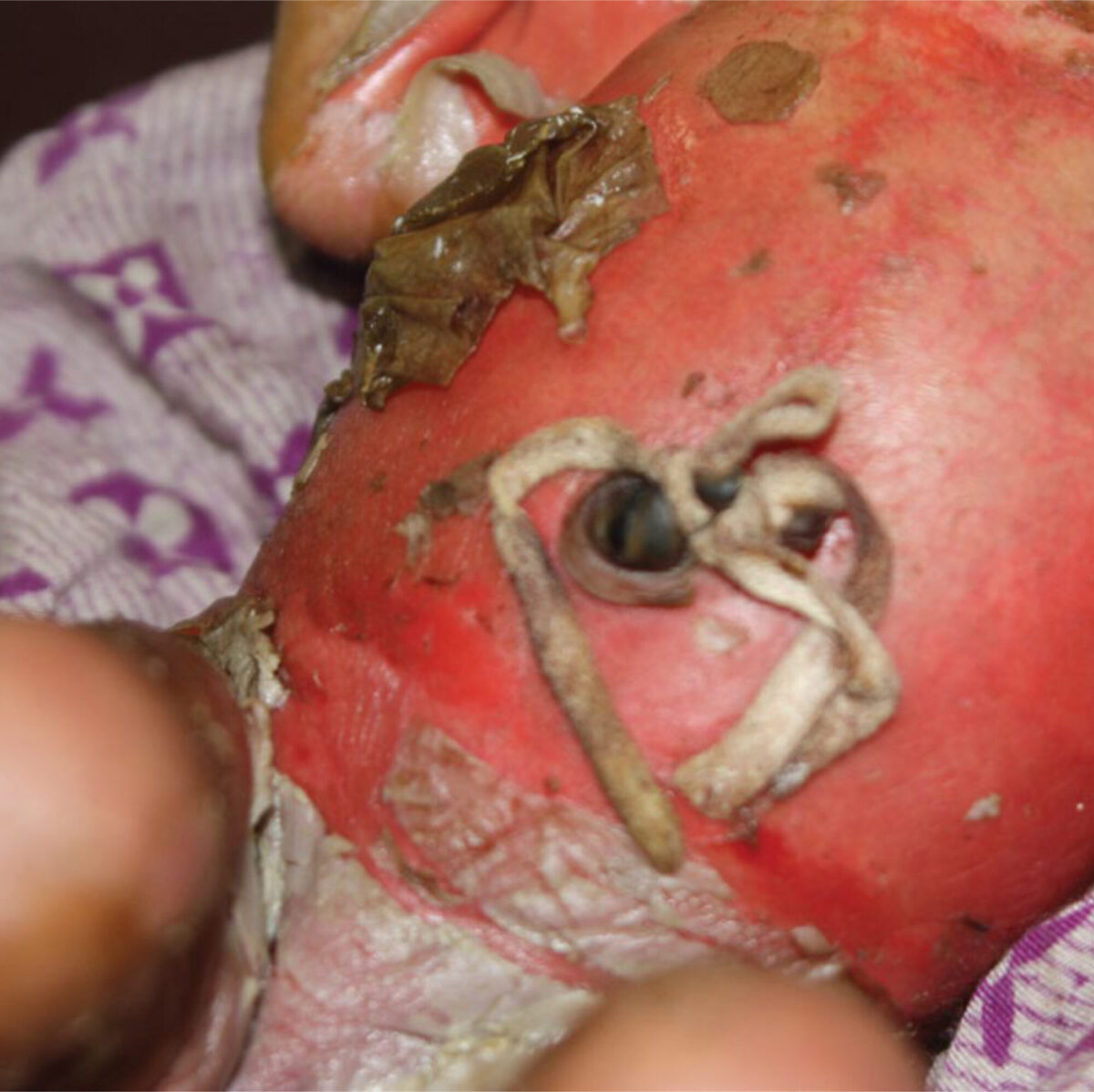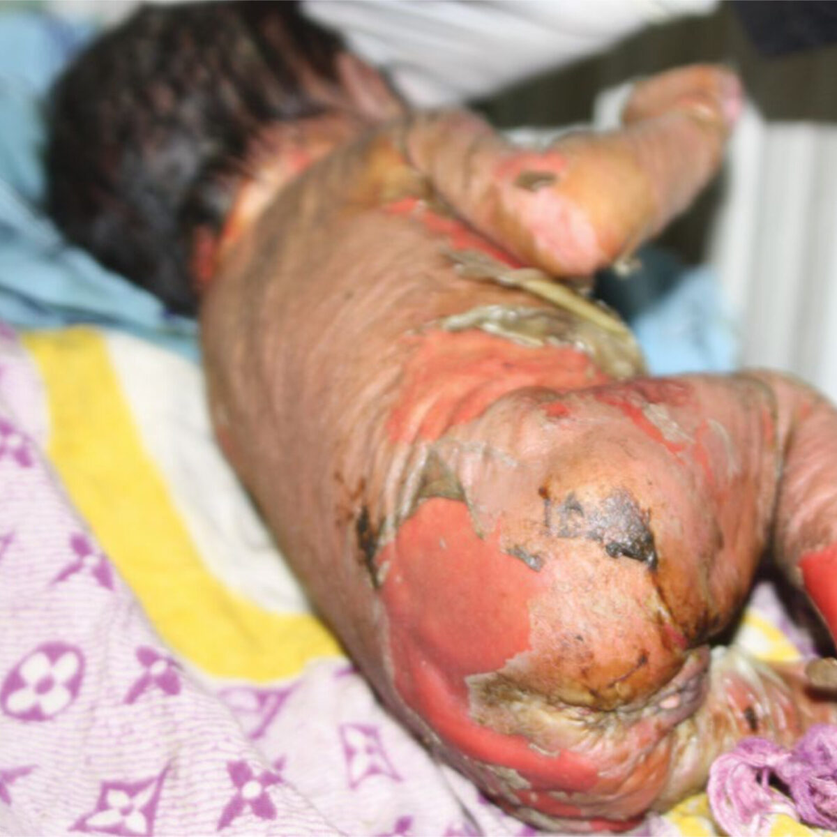 The following days the skin condition did not change. The child gave the impression of being in a lot of pain and nothing but paracetamol was available. Unfortunately the child died several days later.