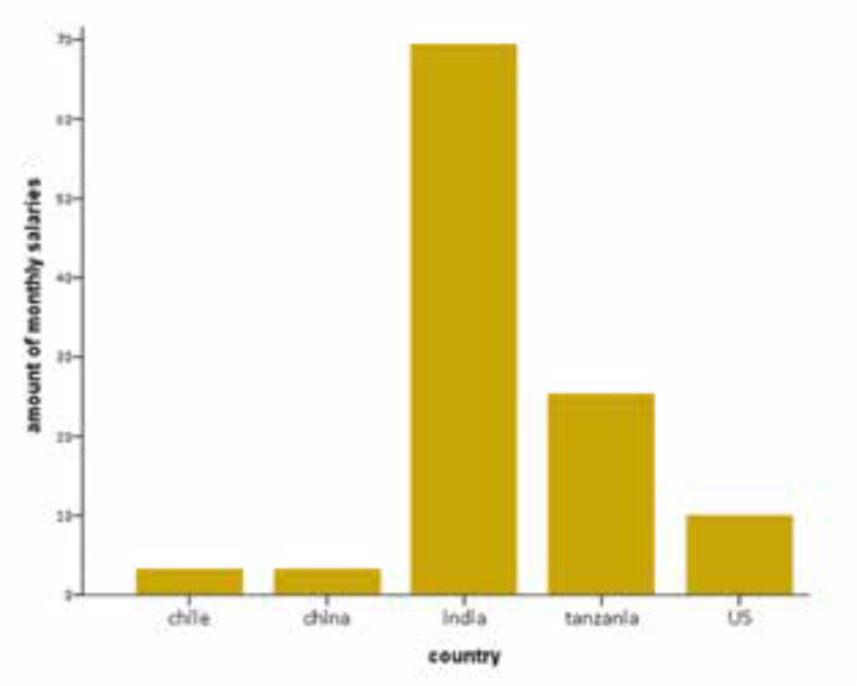 The barriers that undermine the outcomes of a Ponseti club-foot programme are primarily poverty and noncompliance with the extended post-casting brace protocol. [12] A nice comparison has been made [14] between the treatment costs of complicated diabetic foot ulcers in four countries on four continents. The treatment costs were transformed to US dollars, taking into ac-count the part of the costs which were covered by the insurance and which part the patients had to pay themselves (co-pay). When comparing the treatment costs per country, you see huge differences, but when you take into account which part of the treatment has to be paid for by the patients, the differ-ence is even larger and the graphs change a lot (Figure 1). In general, the countries with the highest treatment costs also have insurances which cover up to 100% of the treatment costs. When you take into account the amount the patients have to pay themselves the differences between the countries become much larger. In this example the average salary for that specific country has been used, but in real life the incomes are much lower for the majority of patients. Figure 2 shows the amount of monthly income the patient has to pay for his treatment. Even when the treatment is free of charge or paid for by a third party, the costs for transport and missed working days form a barrier, although there is a large difference between countries. For example in the Netherlands all treatment costs are insured and the parents only have to pay the travel costs, which is in to-tal less than 5% of their monthly income. In Indonesia parents pay up to 40% of their monthly salary only for travel costs to and from the hospital, and even though the treatment is free of charge, the parents cannot afford the travel expenses. In general the parents are “paid daily” so on the days they are in hospital there is no income for the family. This is a major rea-son for not initiating, or early withdrawal of, the treatment. [7]